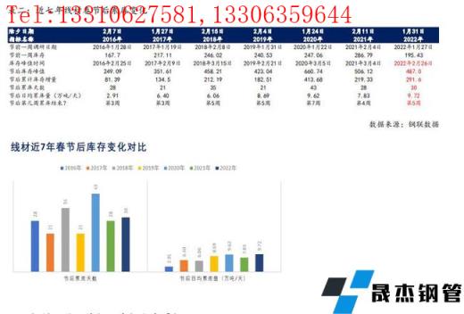 除2020年疫情影響,春節(jié)后累庫天數(shù)長達(dá)50天,并在節(jié)后第8周首次出現(xiàn)降庫趨勢。但2016年至2019年,以及2021年,螺紋鋼春節(jié)后累庫天數(shù)基本維持在28-35天,并在節(jié)后第4-6周首次出現(xiàn)降庫趨勢。從2022年供應(yīng)水平及市場表現(xiàn)來看,2022年螺紋鋼累庫表現(xiàn)或與這些年表現(xiàn)基本相似,但是考慮到今年節(jié)后散點疫情仍存,以及全國部分區(qū)域的雨雪天氣對運輸條件的影響,預(yù)計今年螺紋鋼累庫天數(shù)或在30天左右,節(jié)后日均累庫24.56萬噸/天,同比2021年高13%左右,節(jié)后第4周達(dá)到峰值,庫存峰值同比低21%左右。2、線材