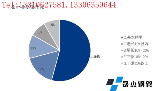 本次調(diào)研擁有出口業(yè)務企業(yè)中,與去年同期相比,出口量預計增加的占比為30%,基本持平的占比為54%,預計出現(xiàn)下滑的占比為16%。