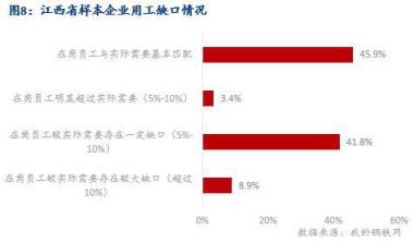 據調研,春節期間江西省樣本企業所有員工都放假停工的企業占調研樣本比例為52.7%,放假停工的員工比例不到20%的企業僅占比5.5%;放假停工的員工比例在60%以上的企業樣本占比達到89%。