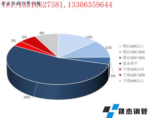 3、樣本企業(yè)當(dāng)前訂單增速小幅下降。增長20%以上的企業(yè)占比13.48%,增長10-20%的企業(yè)占比11.24%;增長10%以內(nèi)的企業(yè)占比4.49%;基本持平的企業(yè)占比53.93%;下滑10%以內(nèi)的企業(yè)占比3.37%;下滑10-20%的企業(yè)占比5.62%;下滑20%以上的企業(yè)占比7.87%。