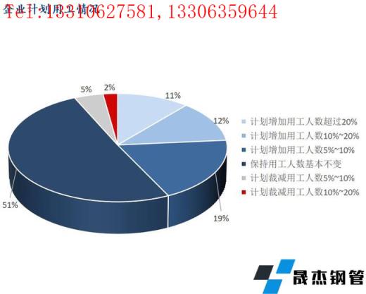 12、樣本企業(yè)計(jì)劃用工情況:計(jì)劃增加用工人數(shù)超過20%的企業(yè)占比11.24%;計(jì)劃增加用工人數(shù)10%~20%的企業(yè)占比12.36%;計(jì)劃增加用工人數(shù)5%~10%的企業(yè)占比19.10%;保持用工人數(shù)基本不變的企業(yè)占比50.56%;計(jì)劃裁減用工人數(shù)5%~10%的企業(yè)占比4.49%;計(jì)劃裁減用工人數(shù)10%~20%的企業(yè)占比2.25%。