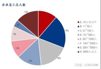 員工在100人及以下企業(yè)占比48.3%,100-1000人占比24.83%,1000人以上占比26.83%。