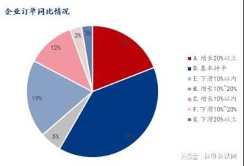 2、與去年同期相比,企業(yè)訂單增長的占比49.89%,持平的占比39.25%,下滑的占比10.86%。企業(yè)訂單情況增長的較多,形勢較為良好。