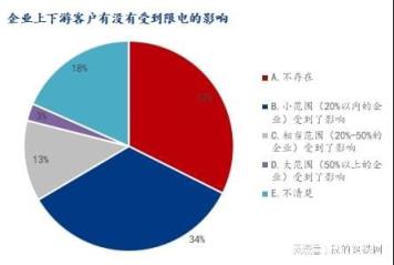 關(guān)于企業(yè)的上下游客戶有沒有受到限電的影響,參與調(diào)研企業(yè)中表示不存在占比32.37%,小范圍(20%以內(nèi)的企業(yè))受到了影響占比34.15%,相當(dāng)范圍(20%-50%的企業(yè))受到了影響占比12.42%,大范圍(50%以上的企業(yè))受到了影響占比2.66%,不清楚占比18.40%??梢娺€是有相當(dāng)一部分企業(yè)受到了限電影響。