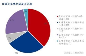 目前企業(yè)的現(xiàn)金流是否充裕,參與調(diào)研企業(yè)中表示比較充裕(維持3-6個月沒問題)占比37.69%,非常充裕(維持半年以上沒問題)占比27.94%,比較緊張(僅能維持1個月)占比6.87%,有些緊張(僅能維持1-3個月)占比24.17%,非常緊張(已經(jīng)基本沒有現(xiàn)金流了)占比3.33%。