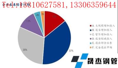 對于企業(yè)未來投資計劃,參與調(diào)研企業(yè)中表示大規(guī)模增加投入占比14.19%,適當(dāng)增加投入占比37.03%,暫不增加投入占比30.38%,適當(dāng)縮減投入占比11.75%,退出部分業(yè)務(wù)占比4.21%,完全退出市場占比2.44%。