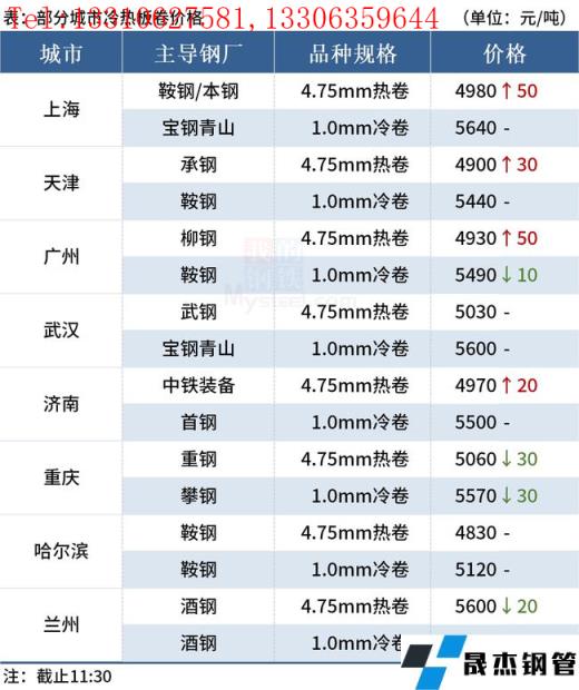 ◎樂從:16日早盤熱卷市場價格上漲50,4.75以上普柳燕4930-4940,2.75普5000-5150錳5120-5140。(單位:元/噸)