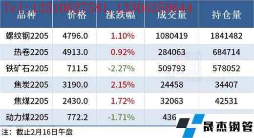 免責聲明:本網站(山東聊城晟杰無縫鋼管廠m.82912.cn)刊載的“2022年02月16日午報:鋼價局部反彈,鋼材_無縫鋼管和焦炭期貨上漲”等均源于網絡,版權歸原作者所有,且僅代表原作者觀點,本文所載信息僅供參考。轉載僅為學習與交流之目的,如無意中侵犯您的合法權益,請及時聯系刪除。本網站刊登此篇文章并不意味著本站贊同其觀點或證實其內容的真實性,我們不對其科學性、嚴肅性等作任何形式的保證。如果侵犯了您的版權,請盡快聯系我們予以撤銷,謝謝合作!