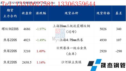 免責聲明:本網站(山東聊城晟杰無縫鋼管廠m.82912.cn)刊載的“2022年02月17日日報:鋼材_無縫鋼管價格指數下跌20.19元/噸”等均源于網絡,版權歸原作者所有,且僅代表原作者觀點,本文所載信息僅供參考。轉載僅為學習與交流之目的,如無意中侵犯您的合法權益,請及時聯系刪除。本網站刊登此篇文章并不意味著本站贊同其觀點或證實其內容的真實性,我們不對其科學性、嚴肅性等作任何形式的保證。如果侵犯了您的版權,請盡快聯系我們予以撤銷,謝謝合作!