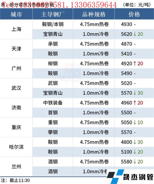 ◎樂從:18日早盤熱卷市場價格上漲20,4.75以上普柳燕4920-4930,2.75普4990-5140錳5110-5130。(單位:元/噸)