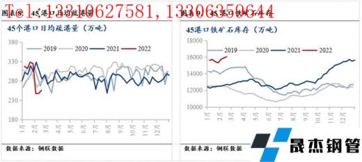 自2021年11月中旬以來,鐵礦石價格上漲400元/噸,漲幅達69.32%;相應的高爐開工率下降2.15%。市場普遍認為鐵礦石價格上漲偏離實際基本面情況,疊加2月15日鐵礦石迎來強監管,鐵礦石價格出現回落。2月18日,本周五鐵礦石價格820元/噸,較上周下跌133元/濕噸。鐵礦石價格下跌從兩個方面影響厚壁無縫鋼管價格:A、厚壁無縫鋼管成本下移,厚壁無縫鋼管支撐減弱;B、扭轉黑色產業鏈偏樂觀的市場情緒,降低厚壁無縫鋼管追漲的風險偏好,從而帶動厚壁無縫鋼管價格下跌。