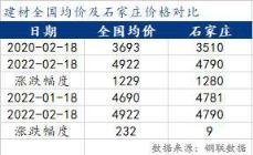 根據(jù)數(shù)據(jù),截至2月18日,螺紋鋼全國均價4922元/噸,較上月19日上漲了232元/噸,較去年同期上漲了1229元/噸;石家莊地區(qū)建筑厚壁無縫鋼管價格在4790元/噸左右,較上月19日上漲了9元/噸,較春節(jié)后高點跌了230元/噸,當前價格較去年同期上漲1280元/噸。當前市場價格遠高于去年同期水平,但春節(jié)后價格上漲、下跌均快于全國平均水平。