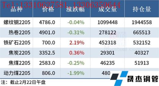 免責聲明:本網站(山東聊城晟杰無縫鋼管廠m.82912.cn)刊載的“2022年02月22日午報:鋼價多數上漲,黑色期貨高開低走”等均源于網絡,版權歸原作者所有,且僅代表原作者觀點,本文所載信息僅供參考。轉載僅為學習與交流之目的,如無意中侵犯您的合法權益,請及時聯系刪除。本網站刊登此篇文章并不意味著本站贊同其觀點或證實其內容的真實性,我們不對其科學性、嚴肅性等作任何形式的保證。如果侵犯了您的版權,請盡快聯系我們予以撤銷,謝謝合作!