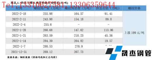 2、月份螺紋累庫的供需情況對應的是1月份螺紋價格,未來的厚壁無縫鋼管價格理應由未來的供需影響。當下的供需對應的是商品屬性,未來的供需對應的就是螺紋的金融屬性了。由于期貨的發展,螺紋鋼的金融屬性越來越強,未來的供需對螺紋定價的影響越來越強。