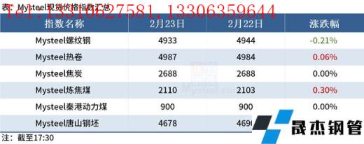 ◎ 2月23日全國15家長、短流程代表無縫厚壁鋼管廠家廢鋼庫存總量102.78萬噸,較昨日增1.04萬噸;庫存周轉天數11.8天,較昨日持平;日均消耗3913.33噸,較昨日增11.81%;日均到貨量4606.67噸,較昨日增14.78%。