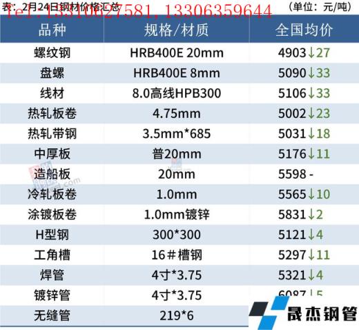 建筑厚壁無縫鋼管:2月24日,全國31個(gè)主要城市20mm三級抗震螺紋鋼均價(jià)4903元/噸,較上個(gè)交易日跌9元/噸。短期來看,一方面當(dāng)前國際形勢緊張,導(dǎo)致市場情緒偏空;另一方面,近期鐵礦等原料價(jià)格下挫,拖累成材價(jià)格,加上近期需求恢復(fù)不及預(yù)期,短期仍然處于供需雙弱格局。因此預(yù)計(jì)25日國內(nèi)建筑厚壁無縫鋼管或?qū)⒕S持弱勢運(yùn)行。