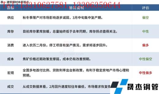 供應(yīng)層面,隨著冬奧會結(jié)束,無縫厚壁鋼管廠家集中復(fù)產(chǎn),若邯鄲地區(qū)限產(chǎn)不加嚴,預(yù)計未來一段時間無縫厚壁鋼管廠家周產(chǎn)量或維持130萬噸左右;流通環(huán)節(jié),從貿(mào)易商庫存成本去分析,年前資源已經(jīng)沒有利潤,年后到的資源已經(jīng)虧損,短期存在成本支撐;需求方面,下游需求緩慢恢復(fù)中,雖不及預(yù)期,但好在廠庫、社庫均不高,需求尚有等待空間。綜合預(yù)計,短期市場存在底部支撐,預(yù)計本周中厚板價格企穩(wěn)為主。