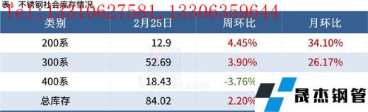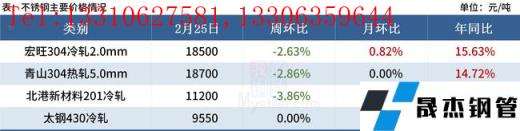近期鎳鐵成交減少價格企穩(wěn),部分成交下探,而304廢不銹鋼價格下調(diào),不銹鋼方面無縫厚壁鋼管廠家挺價心態(tài)減弱,目前3月份無縫厚壁鋼管廠家排產(chǎn)并無減產(chǎn)計劃,但接單相對乏力,后續(xù)到貨或?qū)⒊掷m(xù)增加,預(yù)計本周304現(xiàn)貨價格高位盤整運行。