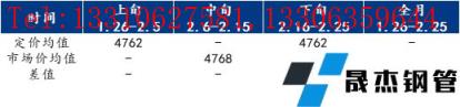 冬儲期間,也就是2月上旬與中旬FDTG建材南昌市場采取保價政策,即1月26日至2月5日無縫厚壁鋼管廠家定價為2月16日至2月25日這旬日定價均值,2月6日至2月15日無縫厚壁鋼管廠家定價為2月26日至3月7日期間日定價均值,當(dāng)前2月上旬與下旬的無縫厚壁鋼管廠家定價已出,中旬定價還未出。南昌市場FDTG螺紋鋼成交價與無縫厚壁鋼管廠家每日定價差值,如下表所示。