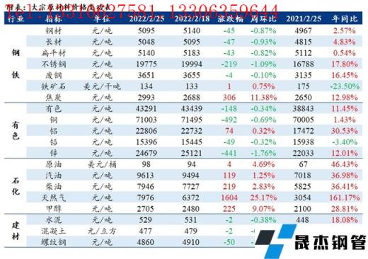 免責聲明:本網站(山東聊城晟杰無縫鋼管廠m.82912.cn)刊載的“周報:大宗原材料價格周報(2.21-2.25)”等均源于網絡,版權歸原作者所有,且僅代表原作者觀點,本文所載信息僅供參考。轉載僅為學習與交流之目的,如無意中侵犯您的合法權益,請及時聯系刪除。本網站刊登此篇文章并不意味著本站贊同其觀點或證實其內容的真實性,我們不對其科學性、嚴肅性等作任何形式的保證。如果侵犯了您的版權,請盡快聯系我們予以撤銷,謝謝合作!
