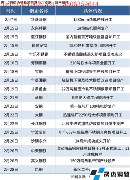 免責聲明:本網站(山東聊城晟杰無縫鋼管廠m.82912.cn)刊載的“2月國內18個鋼鐵項目開工、投產和復產”等均源于網絡,版權歸原作者所有,且僅代表原作者觀點,本文所載信息僅供參考。轉載僅為學習與交流之目的,如無意中侵犯您的合法權益,請及時聯系刪除。本網站刊登此篇文章并不意味著本站贊同其觀點或證實其內容的真實性,我們不對其科學性、嚴肅性等作任何形式的保證。如果侵犯了您的版權,請盡快聯系我們予以撤銷,謝謝合作!
