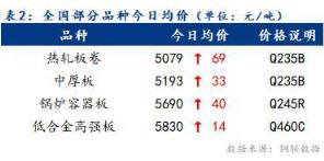 今日全國部分品種均價趨強運行,整體漲幅為14~69元/噸。