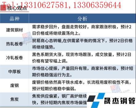 今日黑色系期貨強勢上漲,現貨市場價格積極跟漲,市場交投情緒積極,成交明顯放量。預計短期國內厚壁無縫鋼管價格將延續漲勢。
