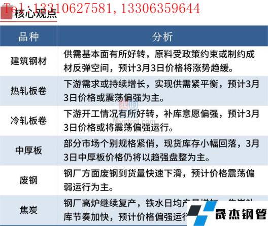 熱軋板卷:3月2日,全國(guó)24個(gè)主要城市4.75mm熱軋板卷均價(jià)5120元/噸,較上個(gè)交易日上漲41元/噸。早盤大漲,現(xiàn)貨報(bào)價(jià)繼續(xù)上漲,成交表現(xiàn)尚可,午后期卷漲幅收縮,下游采購(gòu)量放緩,全天成交一般。綜合來(lái)看,3月份在冬奧會(huì)結(jié)束后,兩會(huì)、殘奧會(huì)即將開幕,3月份產(chǎn)量雖然會(huì)有上升但幅度不大,市場(chǎng)到貨壓力小幅減小,以及穩(wěn)增長(zhǎng)政策的刺激下,下游需求或?qū)⒊掷m(xù)增長(zhǎng),實(shí)現(xiàn)供需緊平衡。綜合來(lái)看,預(yù)計(jì)3日熱軋板卷價(jià)格或震蕩偏強(qiáng)為主。