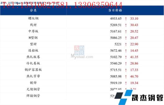 免責聲明:本網站(山東聊城晟杰無縫鋼管廠m.82912.cn)刊載的“2022年03月02日日報:鋼材_無縫鋼管價格指數上漲32.04元/噸”等均源于網絡,版權歸原作者所有,且僅代表原作者觀點,本文所載信息僅供參考。轉載僅為學習與交流之目的,如無意中侵犯您的合法權益,請及時聯系刪除。本網站刊登此篇文章并不意味著本站贊同其觀點或證實其內容的真實性,我們不對其科學性、嚴肅性等作任何形式的保證。如果侵犯了您的版權,請盡快聯系我們予以撤銷,謝謝合作!
