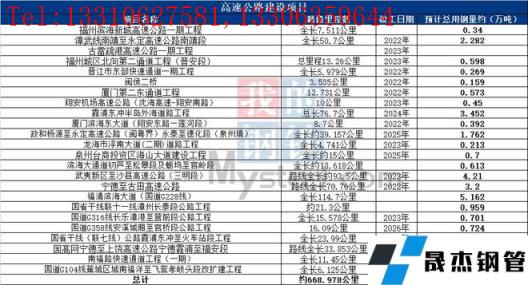 未來2-3年福建省高速公路在建新建線路總長約668.978公里,據(jù)不完全統(tǒng)計預計總用鋼量約30.235萬噸左右。