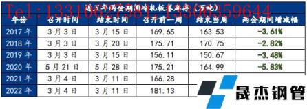 庫存方面,歷年兩會期間,冷軋總庫存都是呈現(xiàn)一個下降的態(tài)勢,普遍降幅在2%以上,且其庫存總體水平皆高于當年全國庫存均值。