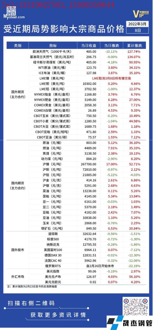 免責聲明:本網站(山東聊城晟杰無縫鋼管廠m.82912.cn)刊載的“受近期局勢影響大宗商品價格一覽表(3月8日)”等均源于網絡,版權歸原作者所有,且僅代表原作者觀點,本文所載信息僅供參考。轉載僅為學習與交流之目的,如無意中侵犯您的合法權益,請及時聯系刪除。本網站刊登此篇文章并不意味著本站贊同其觀點或證實其內容的真實性,我們不對其科學性、嚴肅性等作任何形式的保證。如果侵犯了您的版權,請盡快聯系我們予以撤銷,謝謝合作!