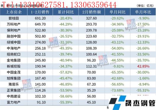 免責聲明:本網(wǎng)站(山東聊城晟杰無縫鋼管廠m.82912.cn)刊載的“15家重點房企2月銷售同比降幅擴大,房地產(chǎn)下行壓力持續(xù)”等均源于網(wǎng)絡,版權歸原作者所有,且僅代表原作者觀點,本文所載信息僅供參考。轉載僅為學習與交流之目的,如無意中侵犯您的合法權益,請及時聯(lián)系刪除。本網(wǎng)站刊登此篇文章并不意味著本站贊同其觀點或證實其內(nèi)容的真實性,我們不對其科學性、嚴肅性等作任何形式的保證。如果侵犯了您的版權,請盡快聯(lián)系我們予以撤銷,謝謝合作!