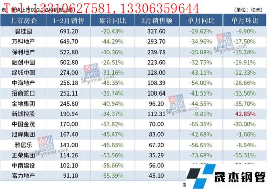 免責聲明:本網站(山東聊城晟杰無縫鋼管廠m.82912.cn)刊載的“15家重點房企2月銷售同比降幅擴大,房地產下行壓力持續”等均源于網絡,版權歸原作者所有,且僅代表原作者觀點,本文所載信息僅供參考。轉載僅為學習與交流之目的,如無意中侵犯您的合法權益,請及時聯系刪除。本網站刊登此篇文章并不意味著本站贊同其觀點或證實其內容的真實性,我們不對其科學性、嚴肅性等作任何形式的保證。如果侵犯了您的版權,請盡快聯系我們予以撤銷,謝謝合作!