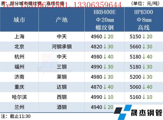 ◎福州:10日早盤建材市場價格跌30,現線三鋼5180三寶5150,螺三鋼4990三寶4960大東海4960吳鐵4950,盤三鋼5270三寶5240。(單位:元/噸)