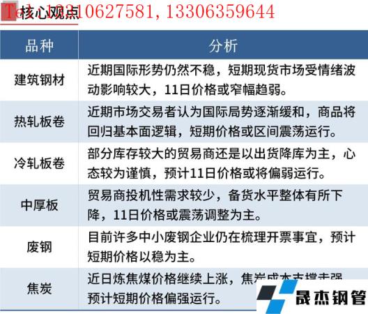 焦炭:3月10日,焦炭市場保持偏強運行。焦企正常生產(chǎn),焦企廠內(nèi)維持低位或者零庫存運行,即產(chǎn)即銷,焦炭繼續(xù)看漲情緒較強,但近日煉焦煤價格繼續(xù)大幅上漲,焦炭成本支撐走強,焦化利潤或再次陷入虧損狀態(tài),焦炭供應依然偏緊。3月12日前河北唐山、邯鄲地區(qū)高爐限產(chǎn)依舊,但此次限產(chǎn)影響時間較短,后期無縫厚壁鋼管廠家考慮兩會后將進一步提產(chǎn)甚至高爐滿產(chǎn)開工,接貨積極,補庫需求明顯,積極采購,對焦炭價格偏強走勢起一定支撐。預計短期內(nèi)焦炭市場暫穩(wěn)偏強運行,后期需繼續(xù)關(guān)注環(huán)保政策、殘奧會、原料成本對焦炭價格的影響。