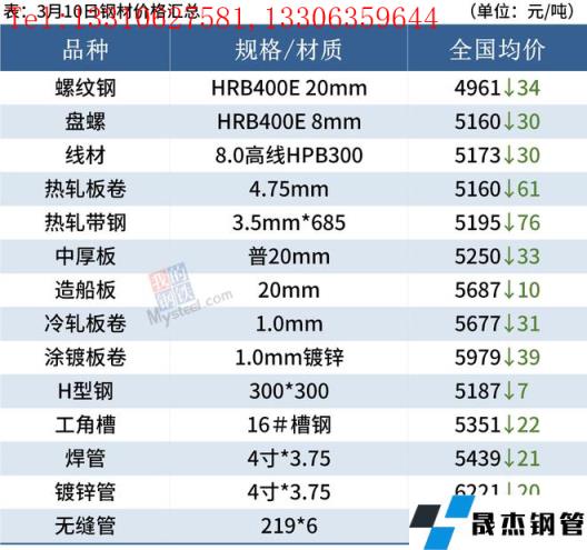 建筑厚壁無縫鋼管:3月10日,全國31個主要城市20mm三級抗震螺紋鋼均價4961元/噸,較上個交易日下跌34元/噸。本周供給繼續(xù)小增,庫存迎來拐點,且降幅尚可。綜合來看,目前供給仍然處于回升階段,但整體增量有限;需求方面,隨著天氣逐漸好轉(zhuǎn),需求有所回升。考慮到近期國際形勢仍然不穩(wěn),短期現(xiàn)貨市場受情緒波動影響較大。因此預計11日國內(nèi)建筑厚壁無縫鋼管價格將繼續(xù)窄幅趨弱為主。