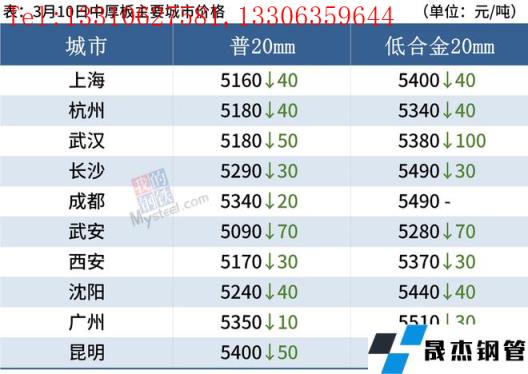 中厚板:3月10日,全國24個主要城市20mm普板均價5250元/噸,較上個交易日下跌33元/噸。據(jù)周度厚壁無縫鋼管產(chǎn)量、庫存數(shù)據(jù)顯示,本周中板產(chǎn)量減4.06萬噸,廠庫降2.70萬噸,社庫降4.66萬噸,產(chǎn)量庫存雙減,無縫厚壁鋼管廠家受原料漲價及兩會影響,一定程度減量,貿(mào)易商投機性需求較少,備貨水平整體有所下降,需求方面小幅回升,程度有限。綜合預計,11日國內(nèi)中厚板價格震蕩調(diào)整為主。