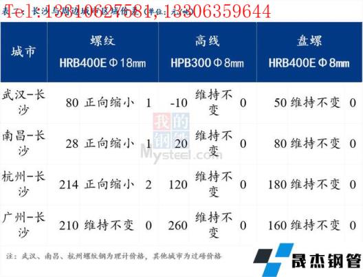 統一為理計單位后,武漢高于長沙80元/噸,南昌高于長沙28元/噸,杭州高于長沙214元/噸,廣州高于長沙210元/噸。長沙市場資源可以流向華東和廣東地區。