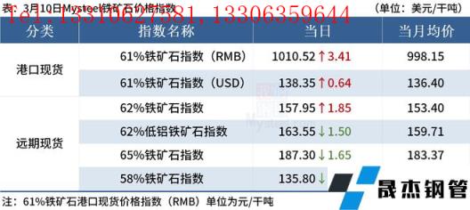 ◎3月10日,全國主港鐵礦石成交111.00萬噸,環(huán)比增85%;237家主流貿(mào)易商建材成交17.50萬噸,環(huán)比增33.9%。