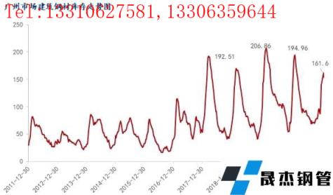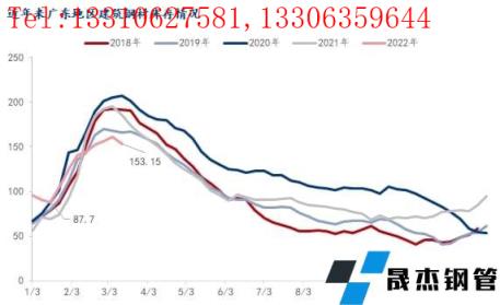 圖2:歷年廣州市場建筑厚壁無縫鋼管庫存走勢 來源:鋼聯數據