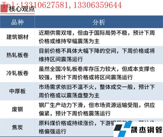冷軋板卷:3月11日,全國24個主要城市1.0mm冷卷均價5674元/噸,較上個交易日下跌3元/噸。黑色電子盤震蕩偏強運行,但是冷軋板卷上漲動力不足,商家主流操作仍以出貨套利為主,成交表現尚可。就下周市場而言;成本方面,當前熱卷原料表現較為強勢,冷熱價差處于合理范圍之內,加之政策方面,無縫厚壁鋼管廠家3月期貨政策多以上漲為主。雖然全國冷軋板卷庫存壓力較大,但當前冷軋板卷成本支撐較強。綜合來看,預計下周全國冷軋板卷價格或將區間震蕩運行。