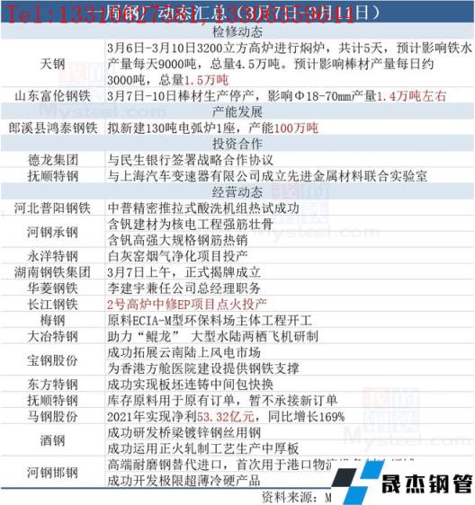 據(jù)不完全統(tǒng)計(jì),本周(3月7日-3月11日)有2家無(wú)縫厚壁鋼管廠家發(fā)布檢修動(dòng)態(tài),具體如下: