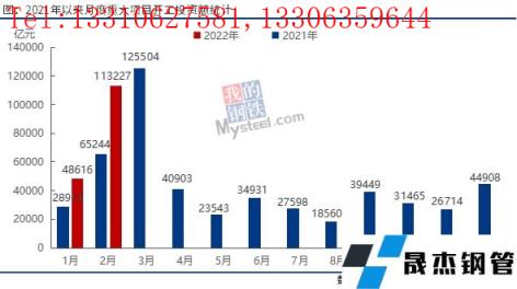 2月春節(jié)以來,全國迎來開工潮,甘肅、吉林、山東、陜西、湖北、浙江、湖南、江西、云南、福建等10省相繼舉行省級重大項目集中開工活動。據(jù)不完全統(tǒng)計,2022年2月,全國各地共開工20459個項目,環(huán)比增長208.4%;總投資額11.3萬億元,環(huán)比增長132.9%,同比增長73.5%。