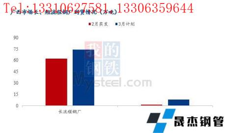 1、3月份廣西地區建筑材省內長流程無縫厚壁鋼管廠家計劃供應量共計74.1萬噸,環比增加11.9萬噸,增幅為19.13%;短流程無縫厚壁鋼管廠家到貨量為8.4萬噸,環比增加6.8萬噸,增幅較大。