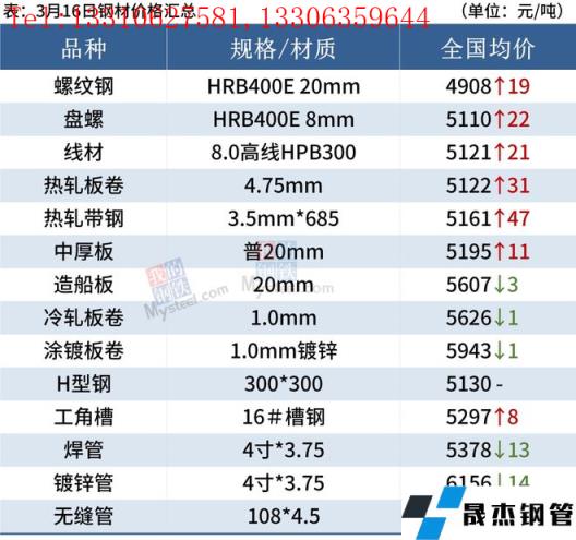 建筑厚壁無縫鋼管:3月16日,全國(guó)31個(gè)主要城市20mm三級(jí)抗震螺紋鋼均價(jià)4908元/噸,較上個(gè)交易日漲19元/噸。短期來看,在宏觀消息刺激下,市場(chǎng)悲觀情緒明顯修復(fù),或?qū)?dòng)現(xiàn)貨市場(chǎng)迎來反彈,至于反彈高度,仍需關(guān)注后期供需面變化,如北方地區(qū)近期高爐集中復(fù)產(chǎn)以及疫情對(duì)于需求端的影響。因此預(yù)期17日國(guó)內(nèi)建筑厚壁無縫鋼管價(jià)格或?qū)⒗^續(xù)趨強(qiáng)運(yùn)行為主。
