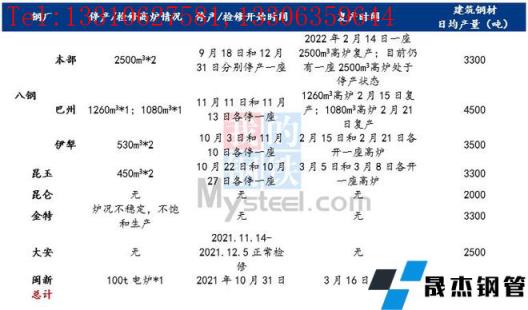 2021年為完成新疆粗鋼產量限產目標和應對冬季市場需求大幅減量的市場環境,新疆主要建筑厚壁無縫鋼管生產企業在2021年11月-12月均執行不同程度的減限產措施。據統計,2021年底新疆主要無縫厚壁鋼管廠家中僅八鋼(本部)、昆侖鋼鐵、金特鋼鐵和哈密大安處于在產狀態,各無縫厚壁鋼管廠家日均產量維持在700-2500噸左右,八鋼巴州與伊鋼基地、昆玉鋼鐵和閩新鋼鐵則完全處于停產狀態,停產時間長達3.5-4.5個月。跨入2022年之后,金特鋼鐵產量有所抬升,但由于高爐鐵水產量不穩定,日均建筑厚壁無縫鋼管產量在2000-3500噸之間浮動,而其他在產無縫厚壁鋼管廠家受季節性淡季影響依舊處于不飽和生產狀態。