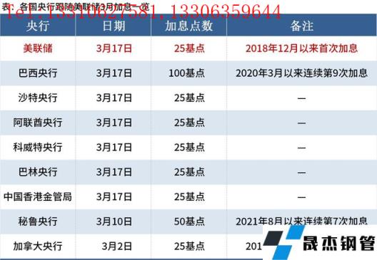 免責聲明:本網站(山東聊城晟杰無縫鋼管廠m.82912.cn)刊載的“美聯儲時隔三年首次加息,多國央行緊隨其后”等均源于網絡,版權歸原作者所有,且僅代表原作者觀點,本文所載信息僅供參考。轉載僅為學習與交流之目的,如無意中侵犯您的合法權益,請及時聯系刪除。本網站刊登此篇文章并不意味著本站贊同其觀點或證實其內容的真實性,我們不對其科學性、嚴肅性等作任何形式的保證。如果侵犯了您的版權,請盡快聯系我們予以撤銷,謝謝合作!