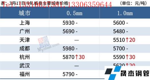 冷軋板卷:3月17日,全國24個主要城市1.0mm冷卷均價5635元/噸,較上個交易日上漲9元/噸。受疫情影響部分中高風險地區車輛貨物實行臨時管控,導致資源不能送到終端客戶,局部區域出現降庫放緩,甚至出現庫存回升的風險;當前市場成交較差,交投氛圍較為冷清,下游客戶以按需采購為主,需求持續疲軟。庫存方面,據不完全統計,現冷軋無縫厚壁鋼管廠家庫存33.94萬噸,周環比減少0.63萬噸,社會庫存143.12萬噸,周環比減少0.28萬噸,周消費量83.12萬噸,環比增加2.90萬噸。綜合來看,故預計18日國內冷軋板卷價格或將震蕩運行。