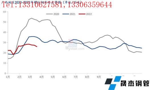 圖表二:廣西地區螺紋鋼庫存走勢圖